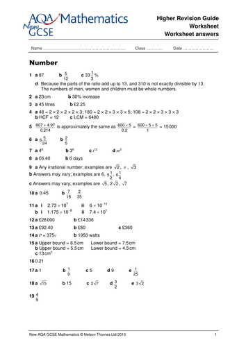 Number - Maths GCSE - Steps, Examples & Worksheet Free gcse number GCSE maths revision guide, including step by step examples, exam questions and free worksheet. Maths Interventions. KS2 Maths Interventions - Year 3-5 Catch Up ... There are also GCSE number worksheets based on Edexcel, AQA and OCR exam questions, along with further guidance on where to go next if you're still stuck. ...